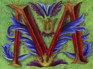![]() All illuminations are original designs by Diane Calvert, or are “original” reproductions from Books of Hours, Psalters, court manuscripts, etc. from the 7th – 16th centuries. All techniques, materials and recipes are from the Middle Ages and are hand-prepared: animal skin parchment, oak gall ink, goose or turkey quill pens or metal nib dip pens, colors ground from semi-precious stones, earths, plants and flowers, 22K gold. Each painting is one-of-a-kind; it can be a direct copy from a medieval manuscript, or can be personalized to your specifications, and comes with a detailed description of the medieval techniques, materials, source(s) and symbolism from which the illumination was adapted. An illumination is an original and welcomed gift, for yourself or others; perfect for weddings, anniversaries, birthdays, baby presents. I will work with you directly to create a unique gift that only you can own or give. Prices for small illuminated floral designs and initials/monograms range from $275 to $400. For larger, more detailed paintings, please ask.